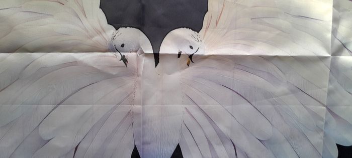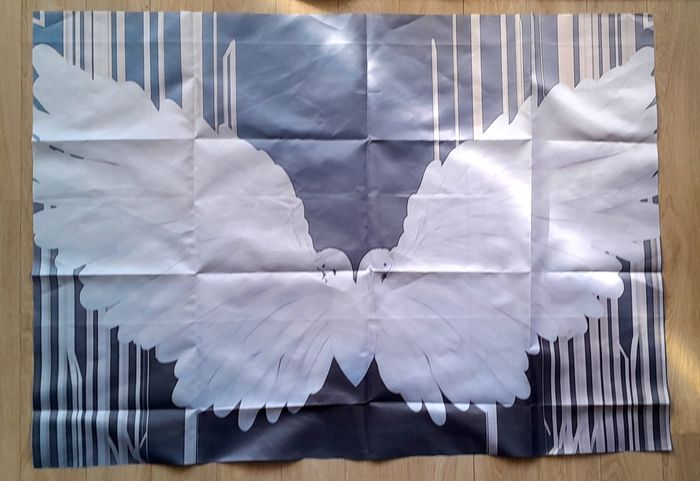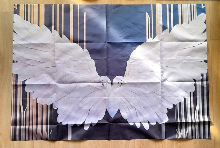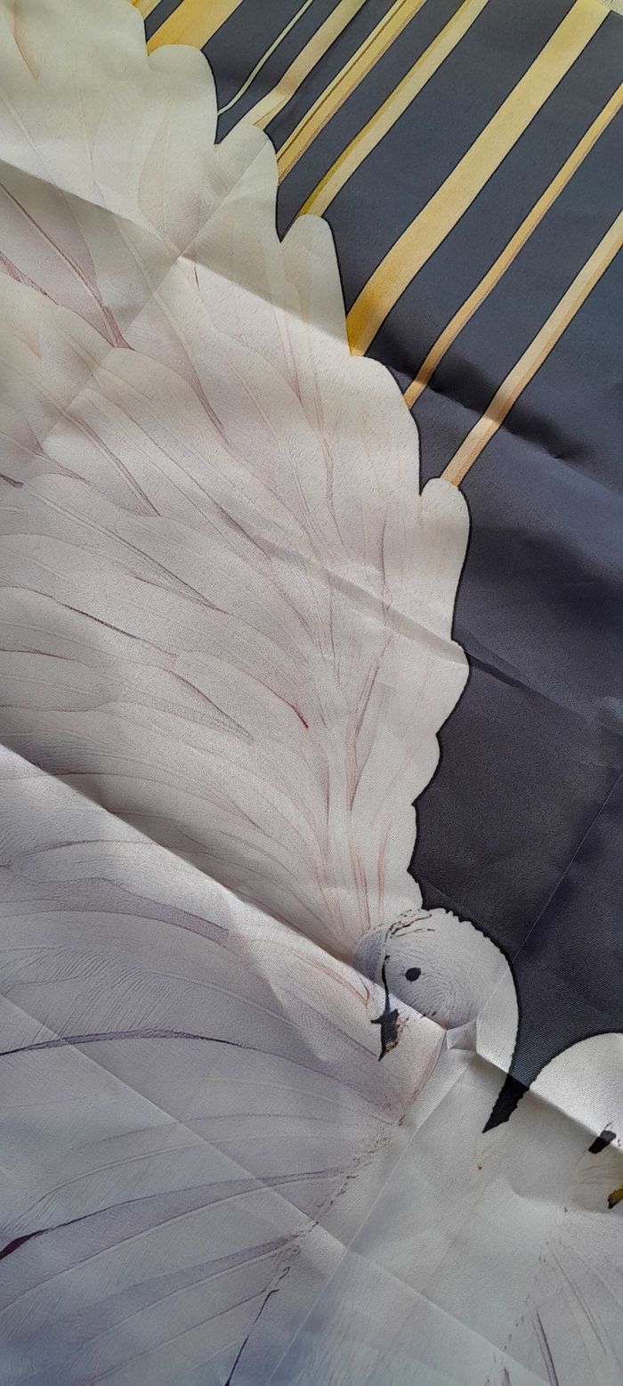 Tissu motifs cygnes 70x100 cm grandes ailes en plumes blanches 100 pour cent polyester