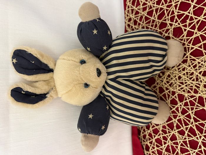 Doudou Peluche Vintage Vertbaudet Lapin Beige Bleu Marine Raye - photo numéro 1