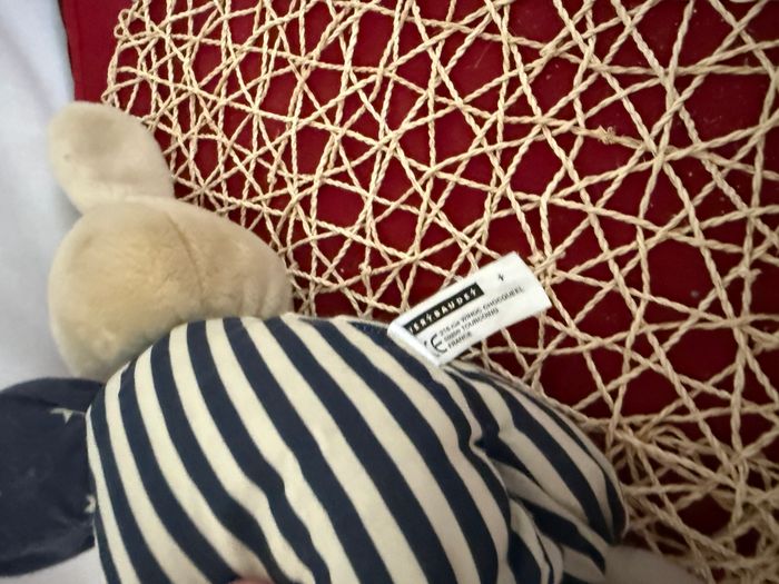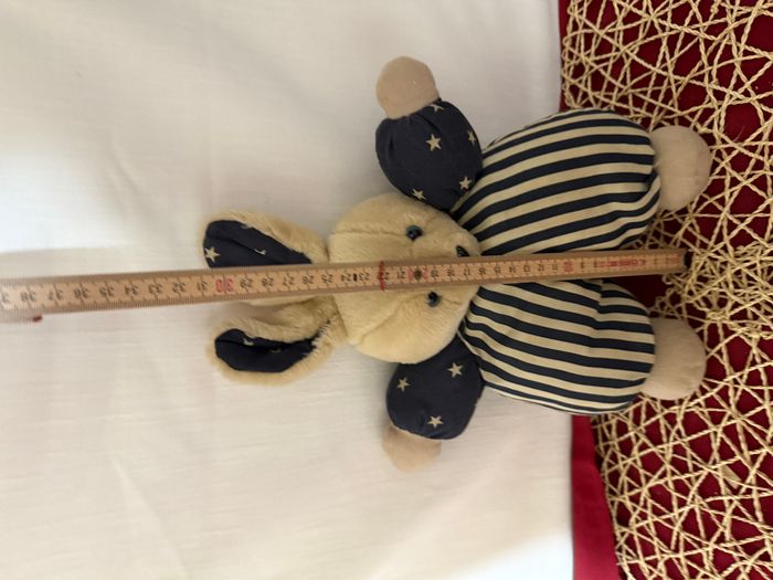 Doudou Peluche Vintage Vertbaudet Lapin Beige Bleu Marine Raye - photo numéro 5