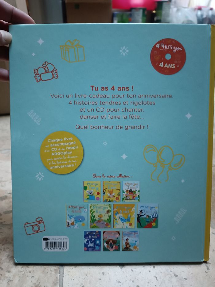 Je vends ce livre pour enfants "4 histoires pour mes 4 ans", avec un CD et une application smartphone/tablette.