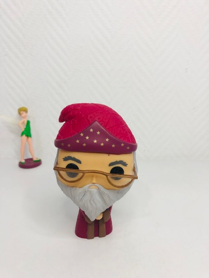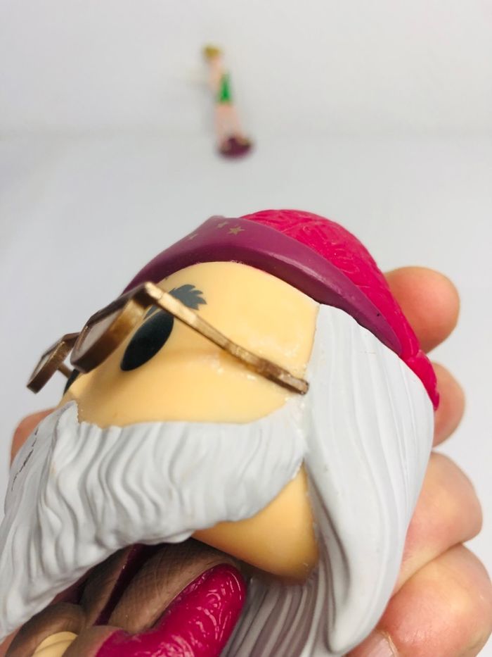 Figurine Funko Pop d'Albus Dumbledore, le célèbre sorcier de l'univers Harry Potter. - Type de produit : Figurine - Marque : Funko - Gamme / Licence : Harry Potter - Personnage : Albus Dumbledore - Référence du set : 04 En bon état Branche de lunettes recollée voir photos
