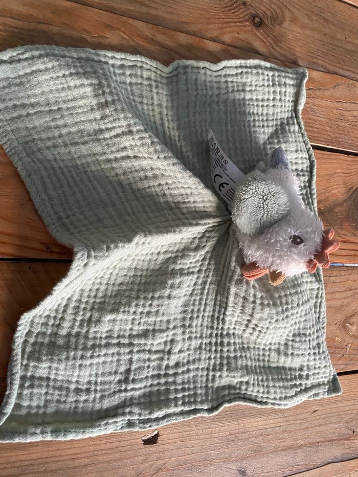 Doudou plat poule coq oiseau Little dutch