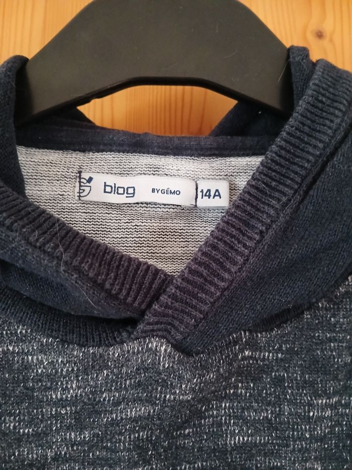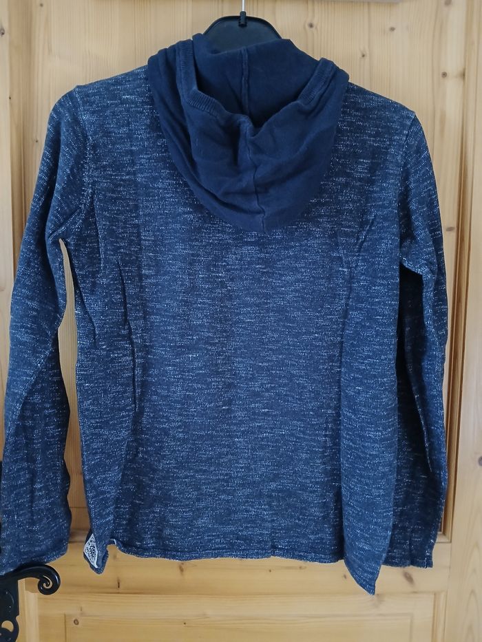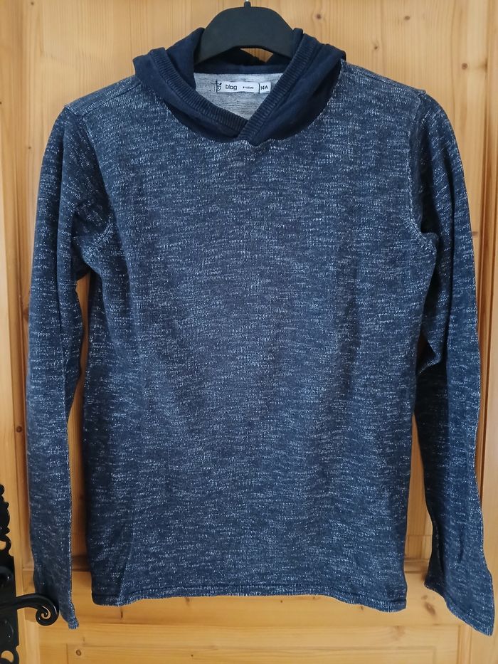 Pull fin à capuche Bleu marine chiné Taille 14 ans Longueur 60 cm Largeur 44 cm Peu porté