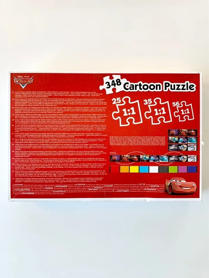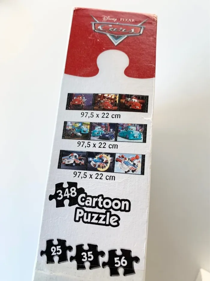 Ces puzzle Disney pixar Cars de 25, 35 et 56 pièces issu de la collection cartoon puzzle met en valeur les personnages emblématiques de Cars tels que Lightning McQueen et Jackson Storm.