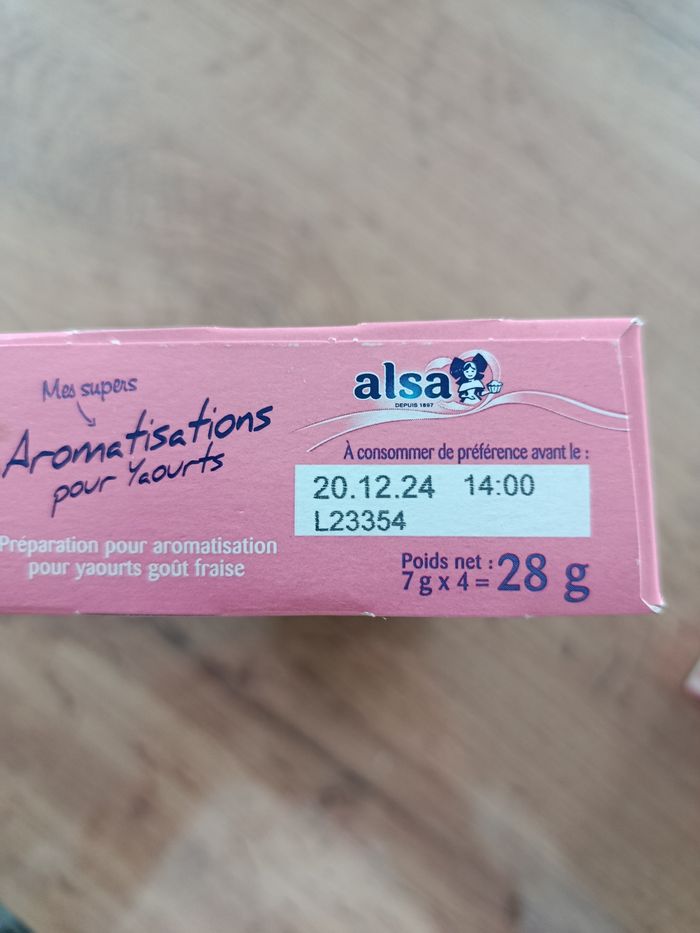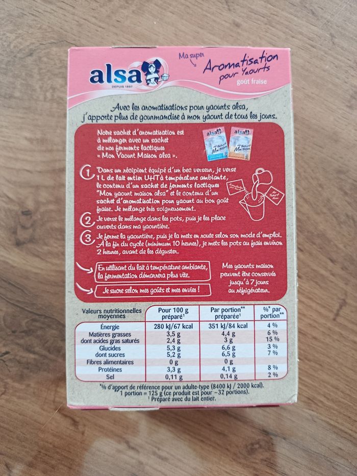 Lot de 6 boîtes Aromatisation pour yaourts au goût de fraise, marque Alsa Chaque boîte contient 4 sachets pour aromatiser 32 pots soit un total de 192 yaourts. DDM à consommer de préférence avant le : 20/12/2024 Les boites sont fermées