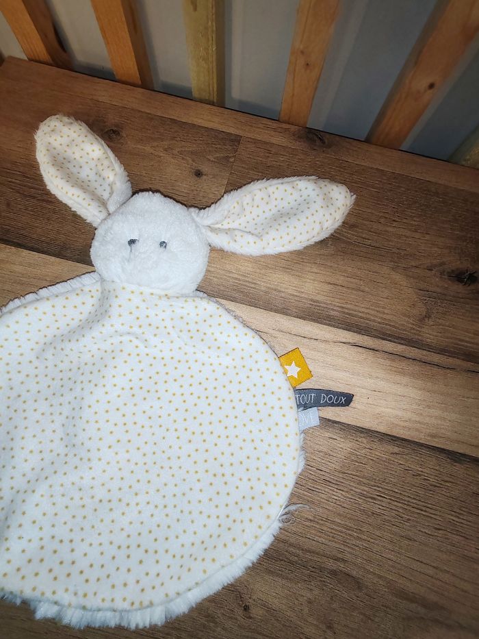 Doudou plat Lapin blanc étoiles jaune TAPE A L’OEIL TAO Tbe 15 euros Envoi en relais