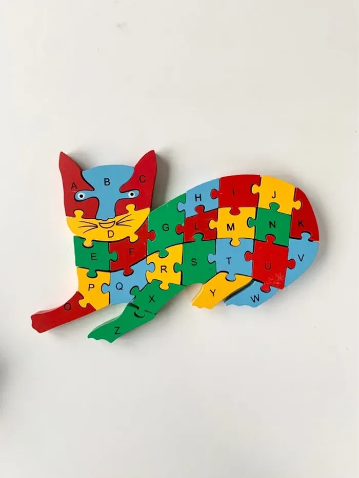 Puzzle 🧩 3D en bois forme de chat apprentissage chiffres et lettres