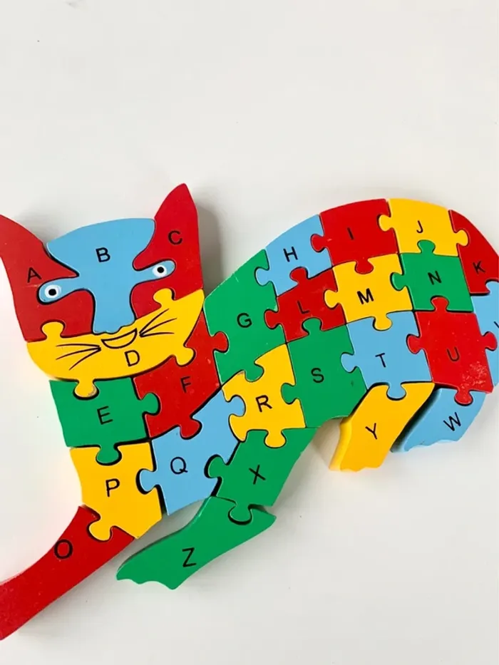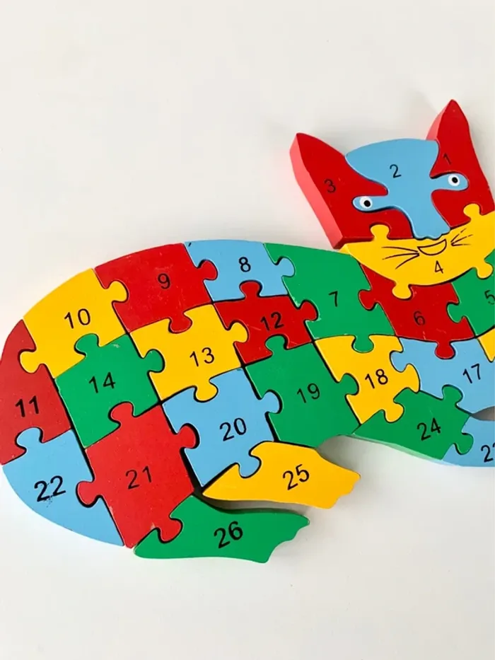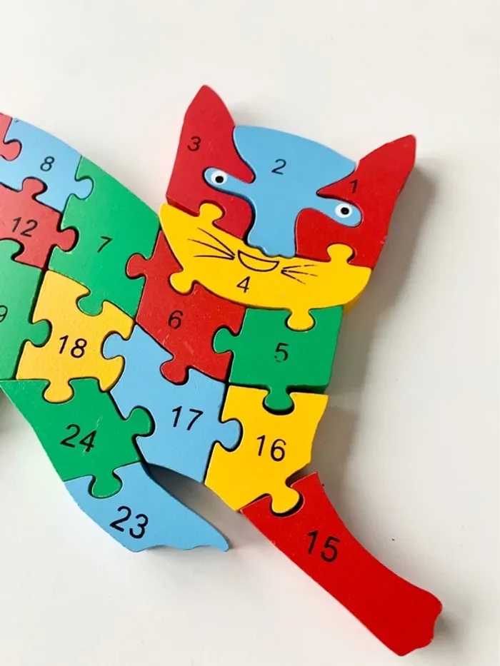 Puzzle 🧩 3D en bois forme de chat apprentissage chiffres et lettres - photo numéro 4