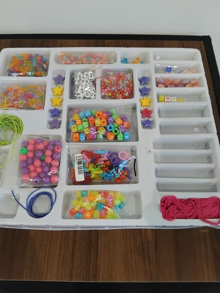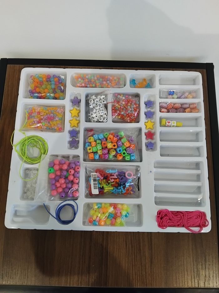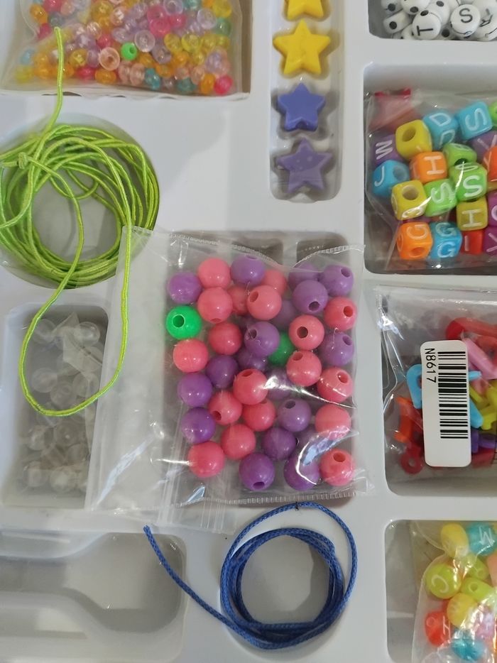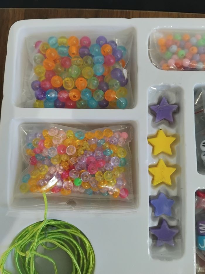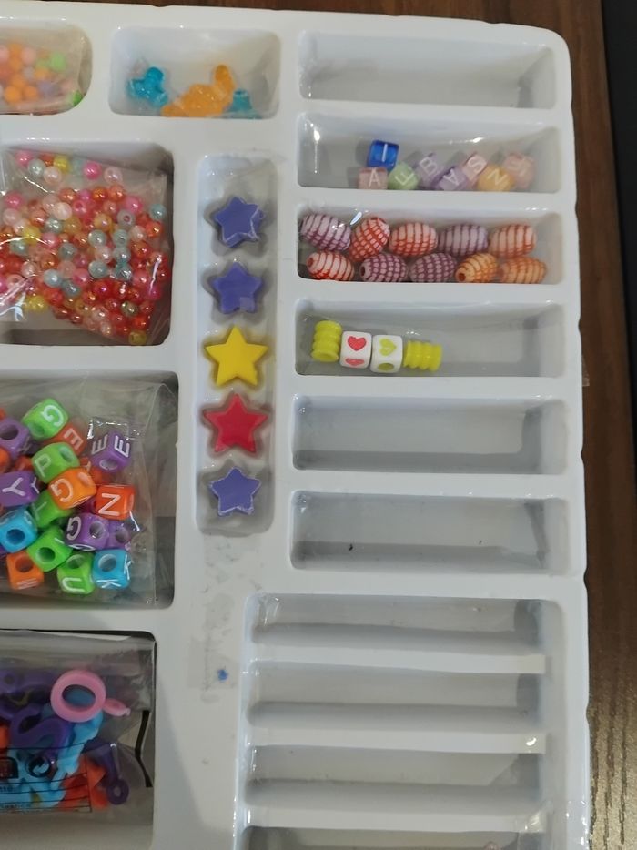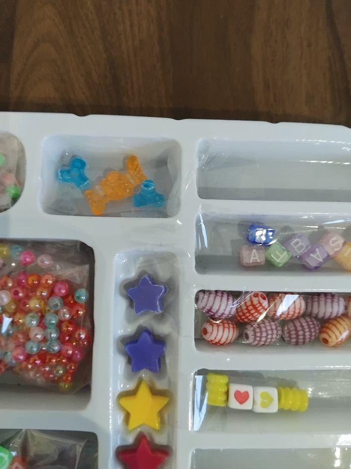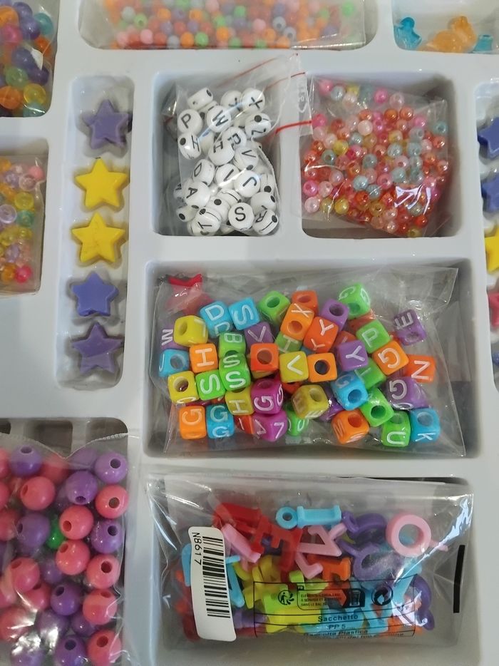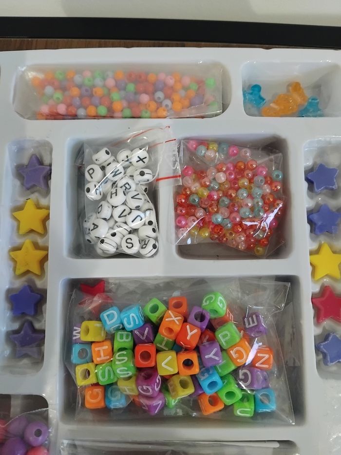 Différentes perles pour faire des bracelets ou collier. Perles avec des lettres, perles étoiles, perles ovales, perles plates, perles pailletés ...