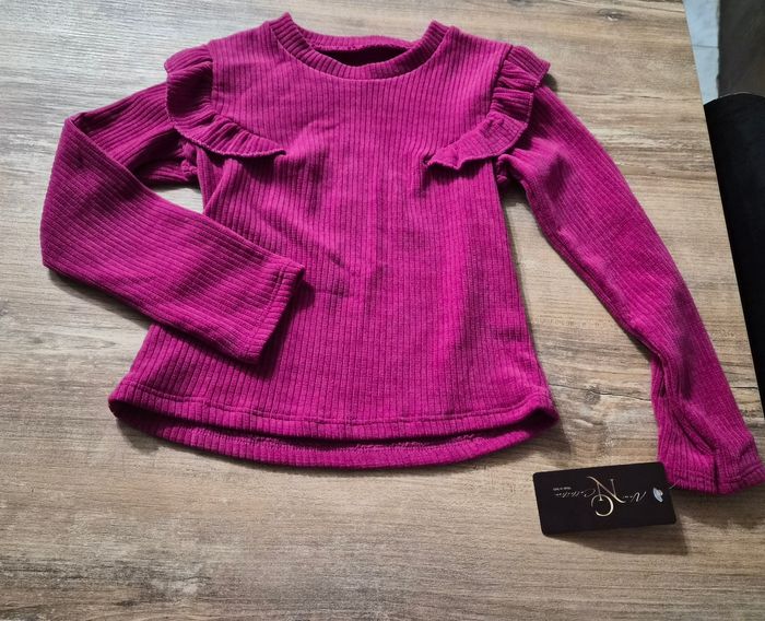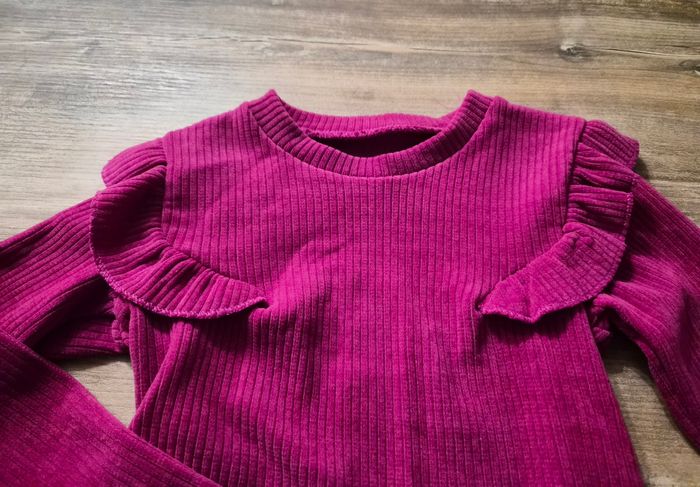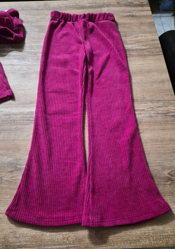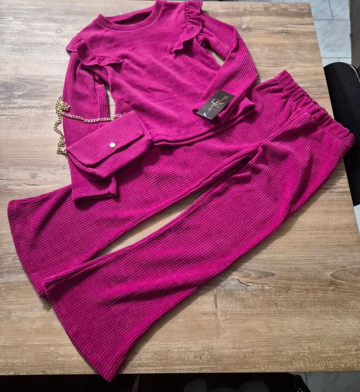 Joli ensemble côtelé composé d'un pantalon évasé, d'un haut avec volants et un petit sac avec chaînette Étiquette taille 10 ans mais taille petit plutôt 8 ans #fille8anstattoogirl_3