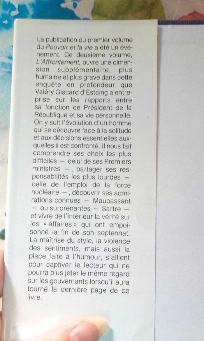 LE POUVOIR ET LA VIE T2 L'AFFRONTEMENT par Valéry GISCARD D'ESTAING Ed. France Loisirs Bon état Résumé en photo