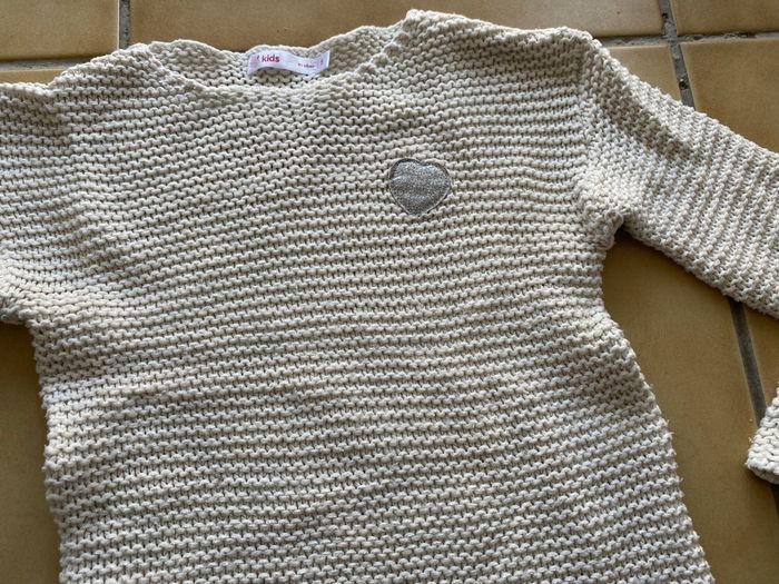 Pull gemo beige et cœur argent taille 5 ans