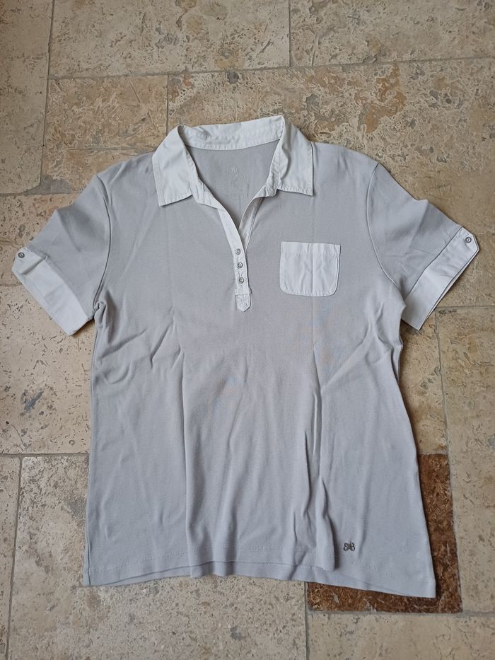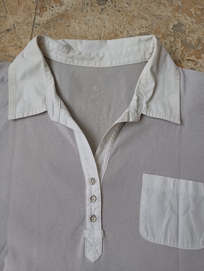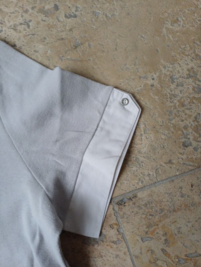 Tres jolie chemise manche courte en tres bon etat la taille XL et la marque BURTON. De couleur gris clair et blanc. Elle aune poche et trois boutons voir la photo ci jointe.