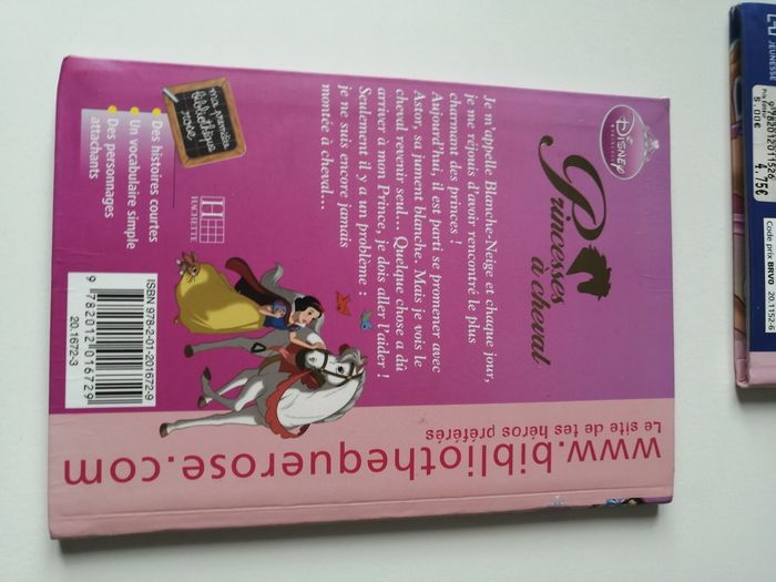 lot de 2 livres bibliothèque rose pour 6/8 ans disney hachette jeunesse princesses à cheval - la surprise de blanche-neige ISBN 9782012016729 ma princesse préférée - le grand amour de jasmine ISBN 9782012011526 peuvent présenter des traces dues aux manipulations