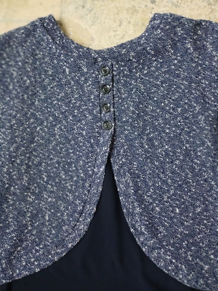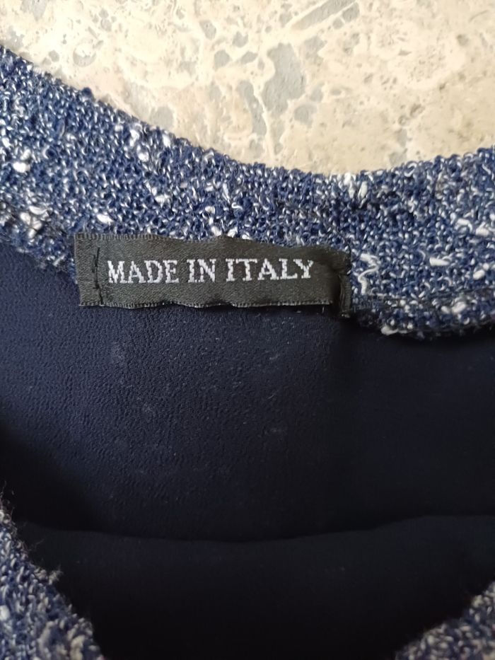 Tres joli pull neuf . Il a une partie pull et une partie chemise tres habillee. De couleur bleu marine et blanc . Et il a 3 boutons derriere voir la photo ci jointe.