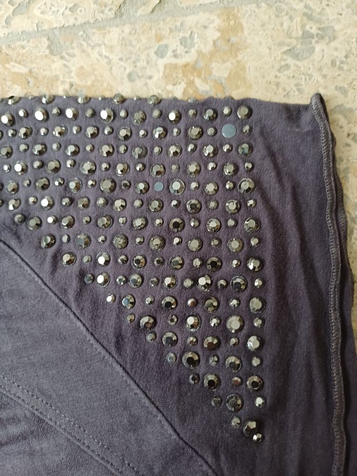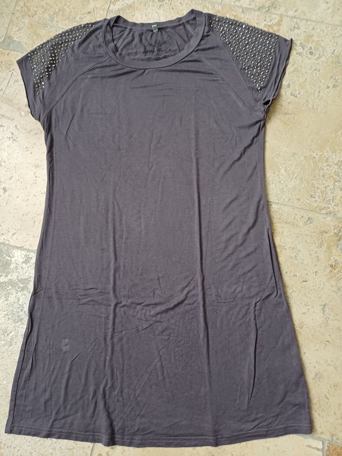Tres jolie robe grise en tres bon etat. La taille est XL la marque AM FEE'S. Avec des strass au niveau des epaules . Voir la photo ci jointe.