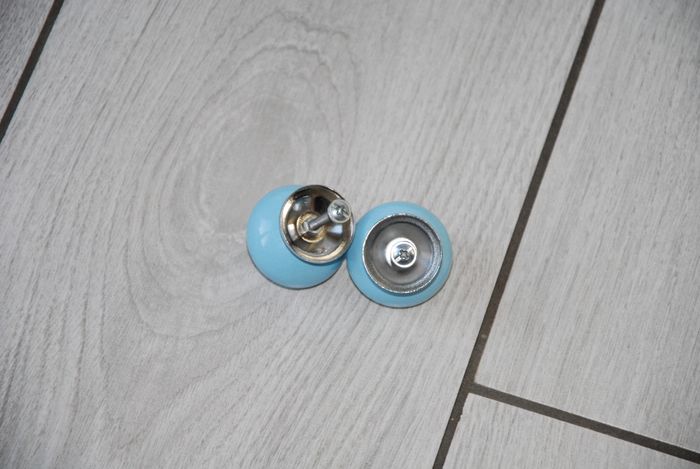 2 Poignées boutons de meubles céramique bleu - photo numéro 2