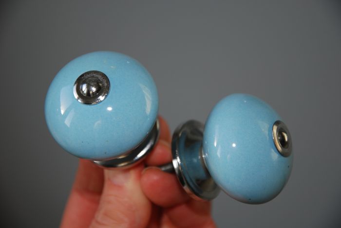 2 Poignées boutons de meubles céramique bleu