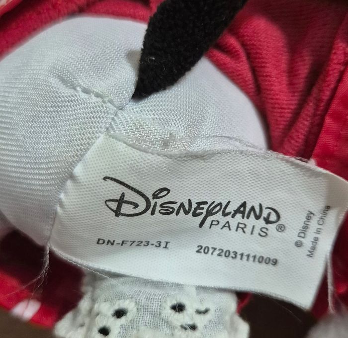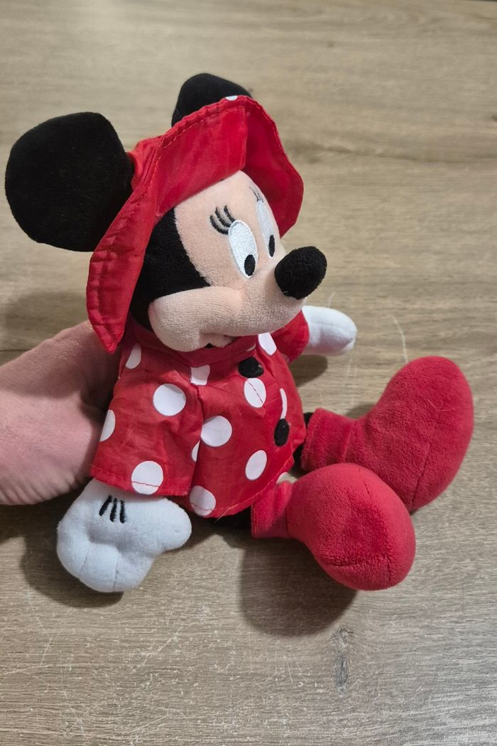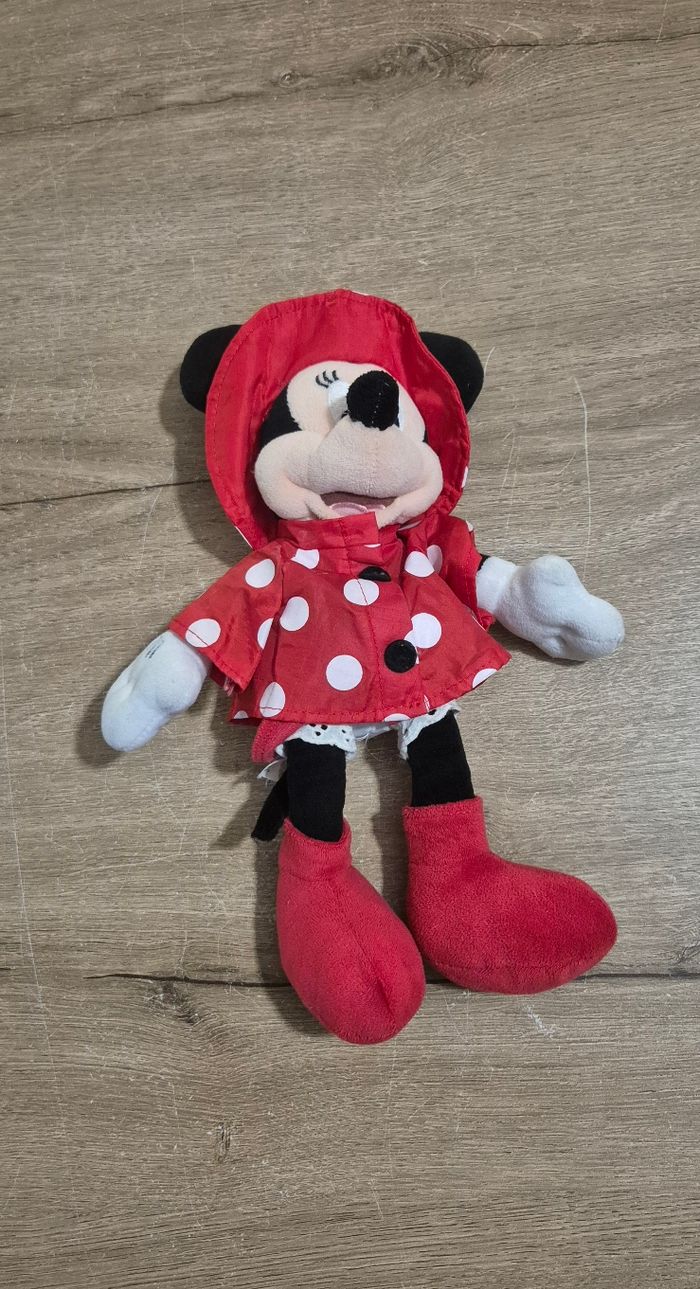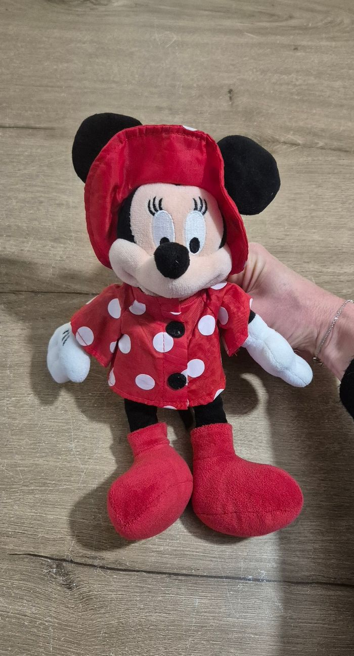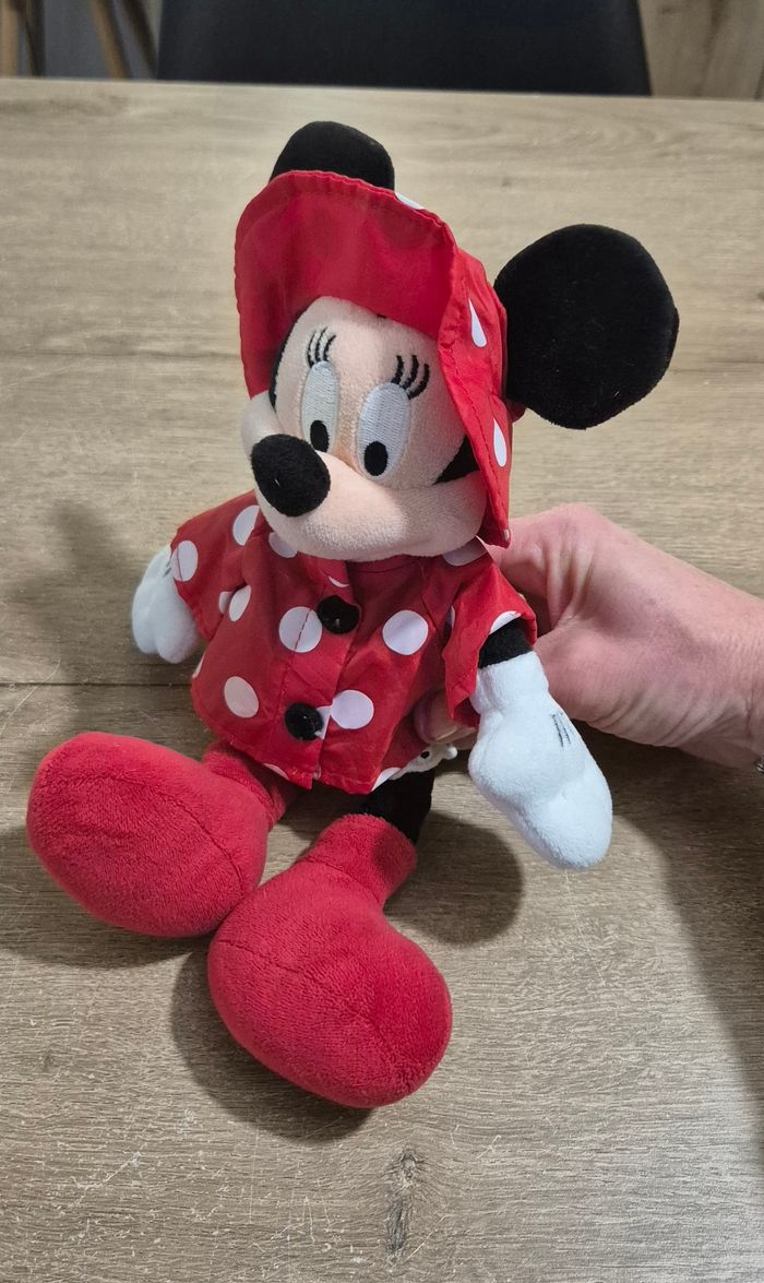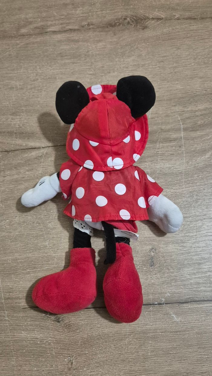 Petite peluche Minnie avec sa veste imperméable à pois et son chapeau Disneyland Paris Très bon état