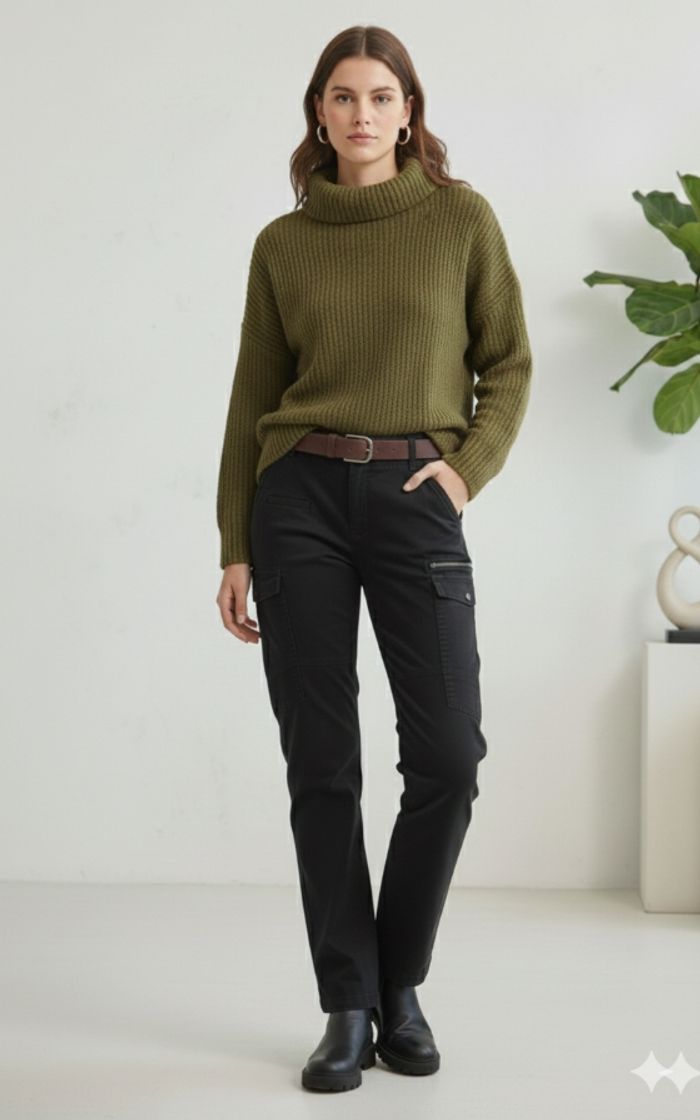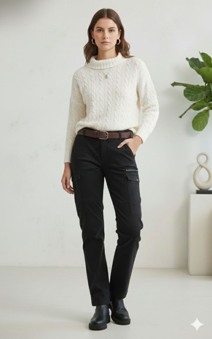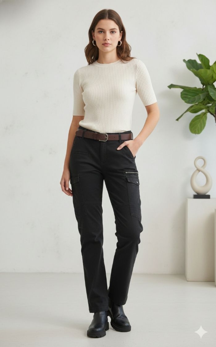 Adoptez le style casual chic avec ce pantalon cargo noir polyvalent.