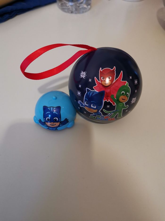 Boule de Noël Pyjamasques avec véhicule /toupie