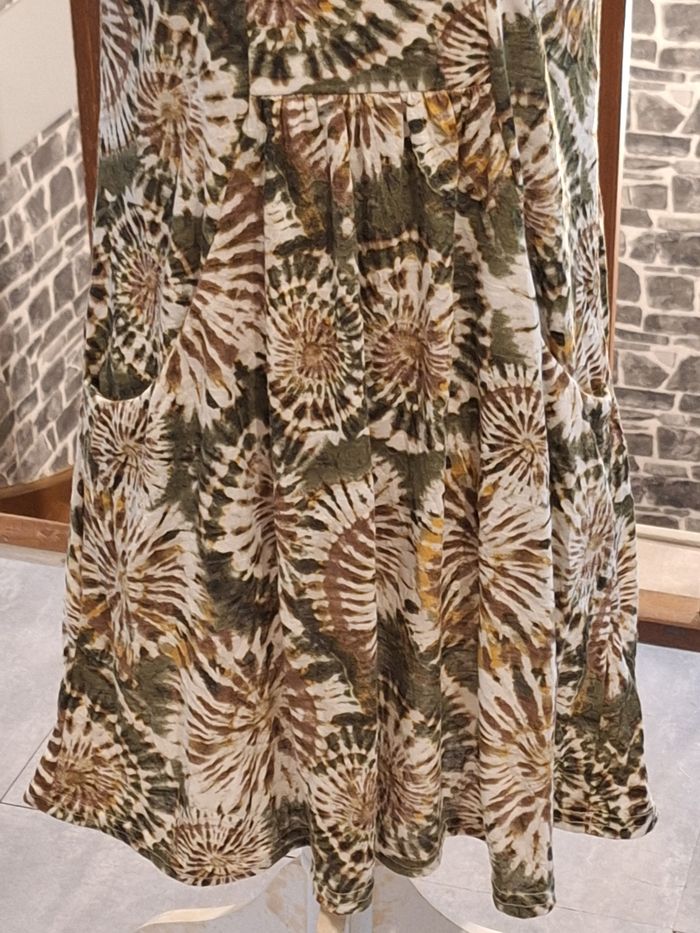 Robe fluide imprimée sur fond kaki et crème - photo numéro 2