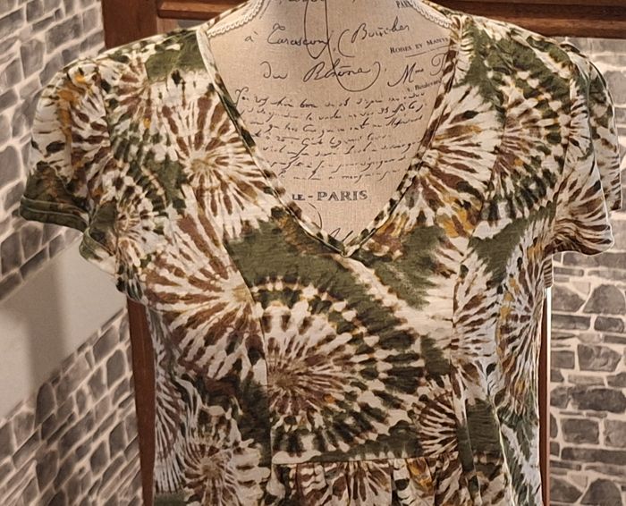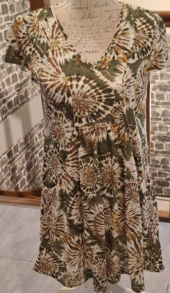 Robe fluide imprimée sur fond kaki et crème - photo numéro 1