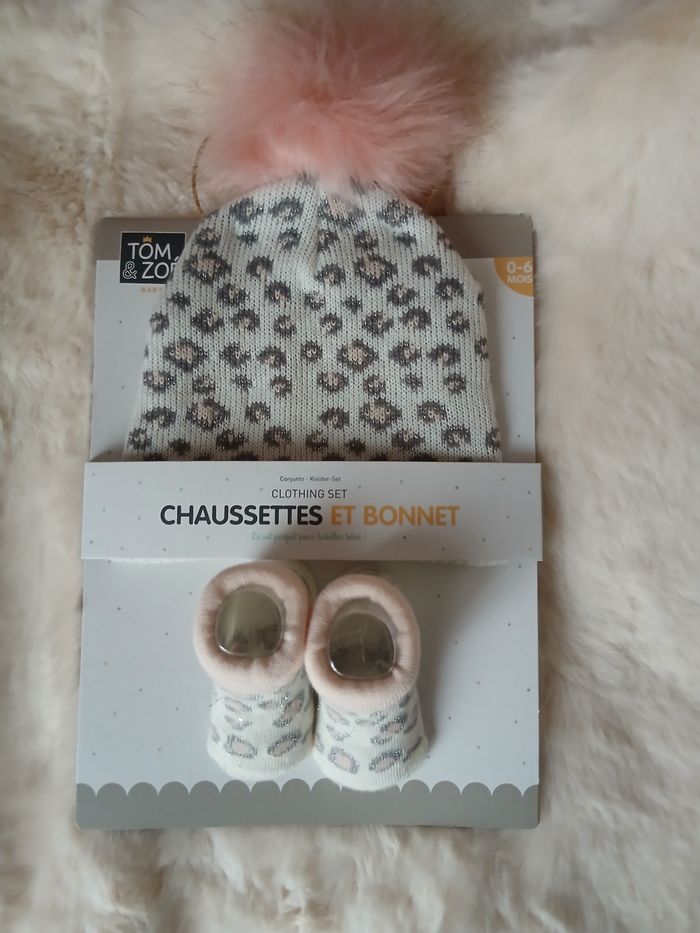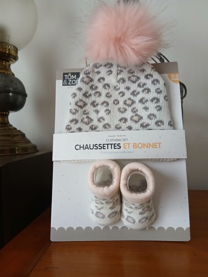 BB 0-6 mois: Kit Cadeau Bonnet & Chaussettes coordonnées
