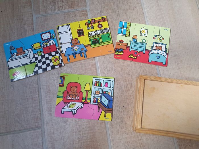 Coffret 4 puzzles en bois, 6 pièces