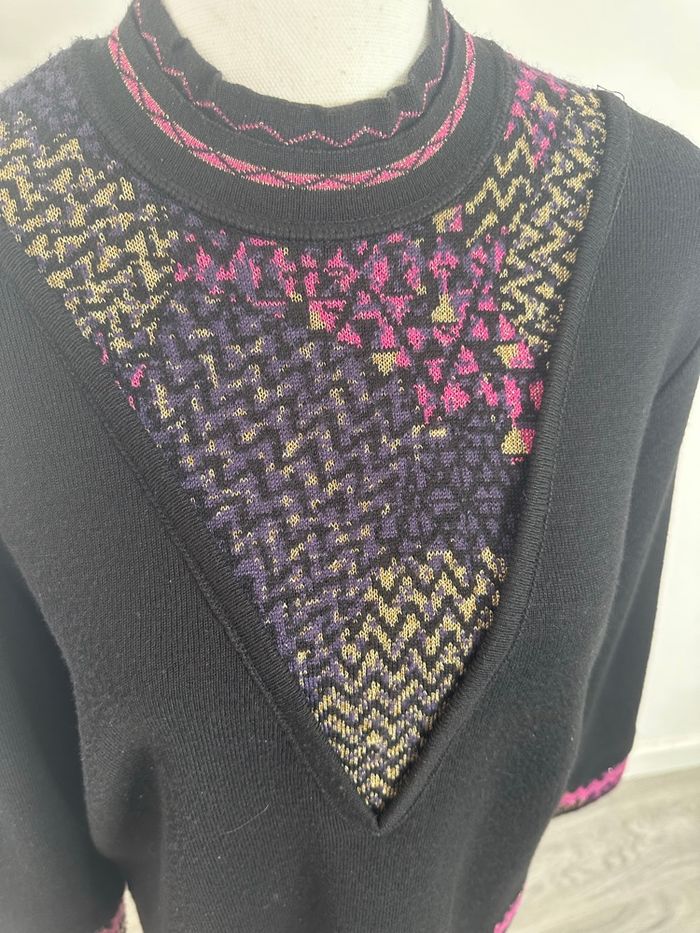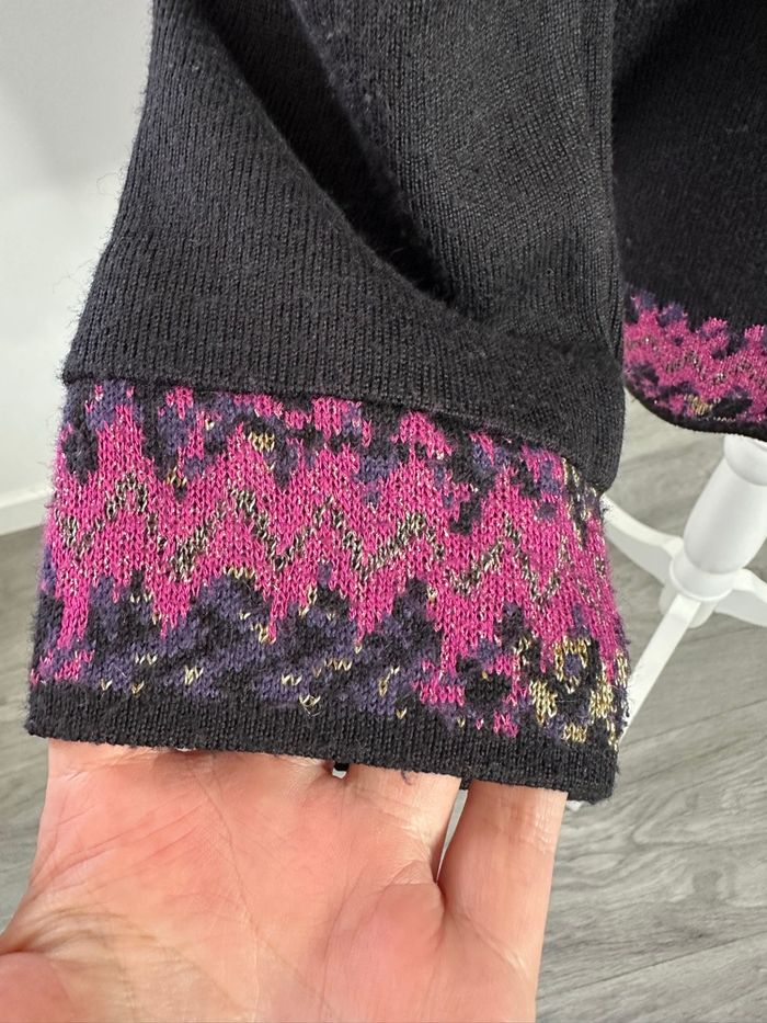 Pull bariolé noir rose violet doré Vintage T42 XL