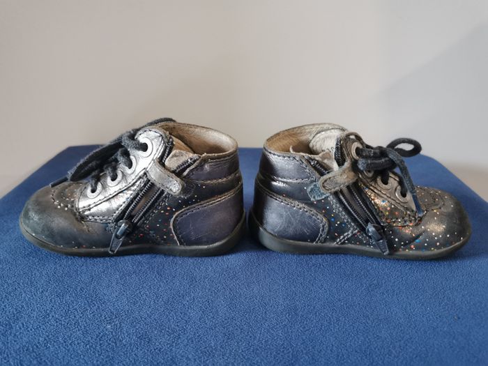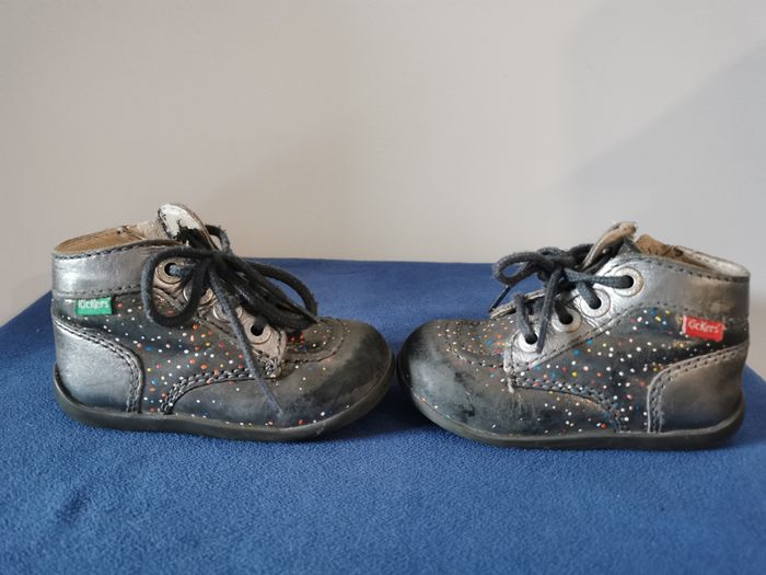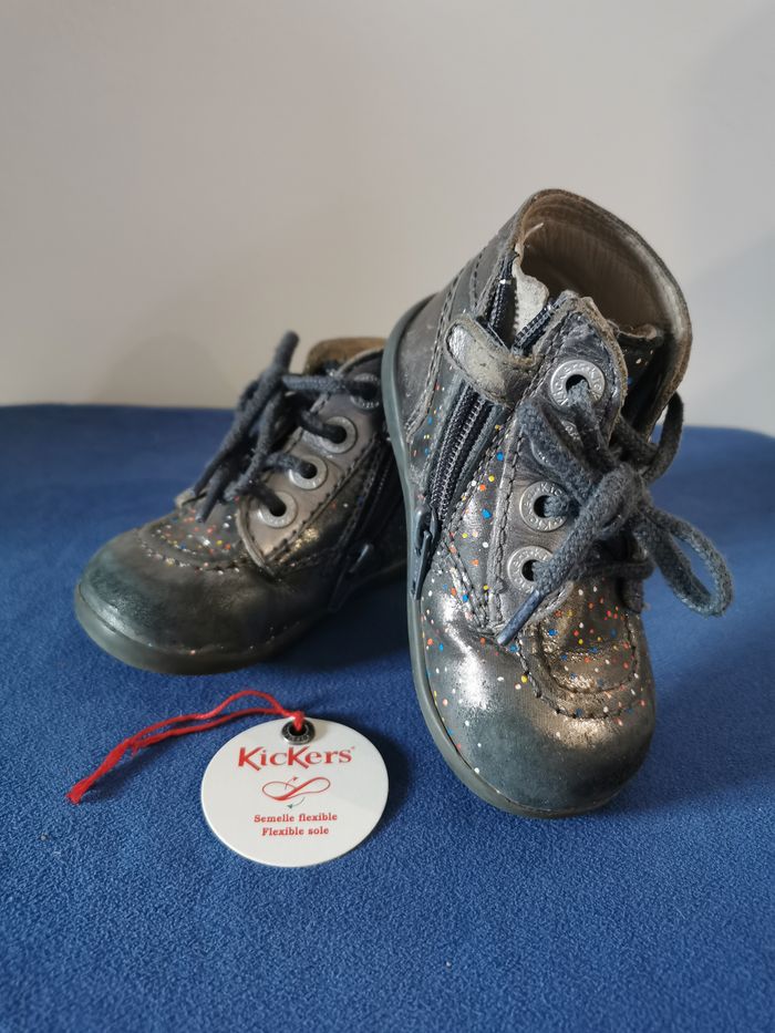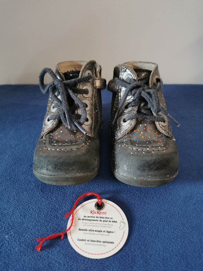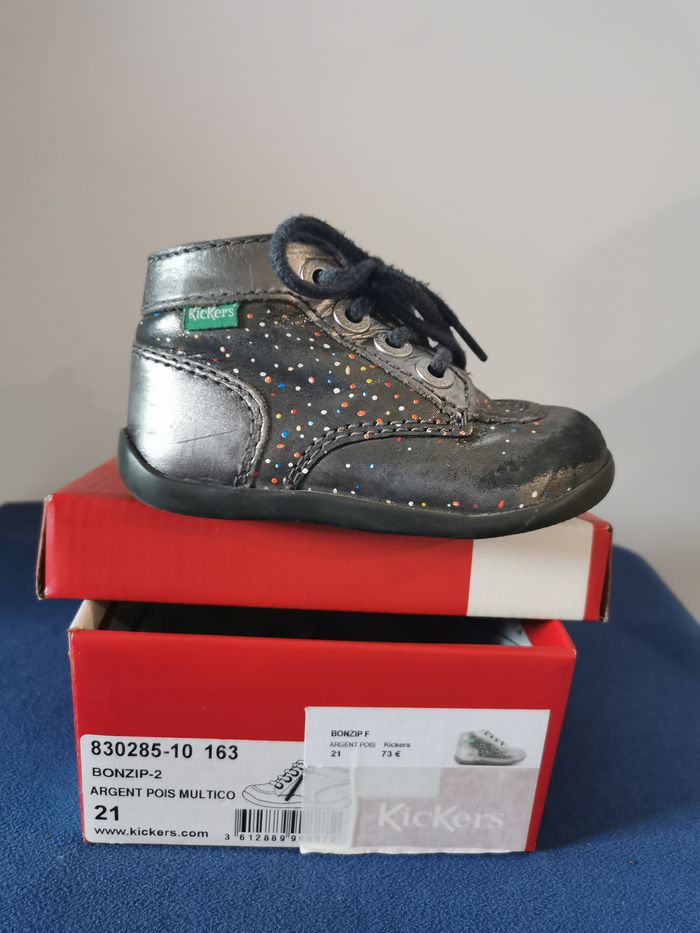 #bottillonsbébé #bottillonsenfant #chaussuresbébé #chaussuresenfant #toutcuir #cuirargenté #poismulticolores #fermeturezip #semelleflexible #kickers