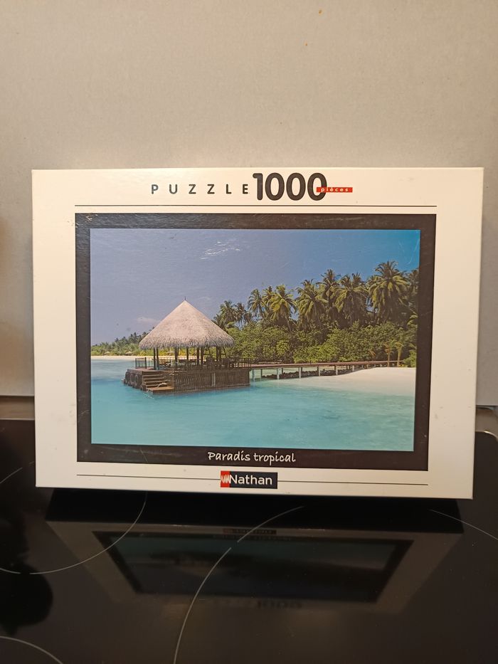 Puzzle de 1000 pièces complet Thème "Paradis Tropical" Marque Nathan Le puzzle est en très bon état, la boîte a quelques marques