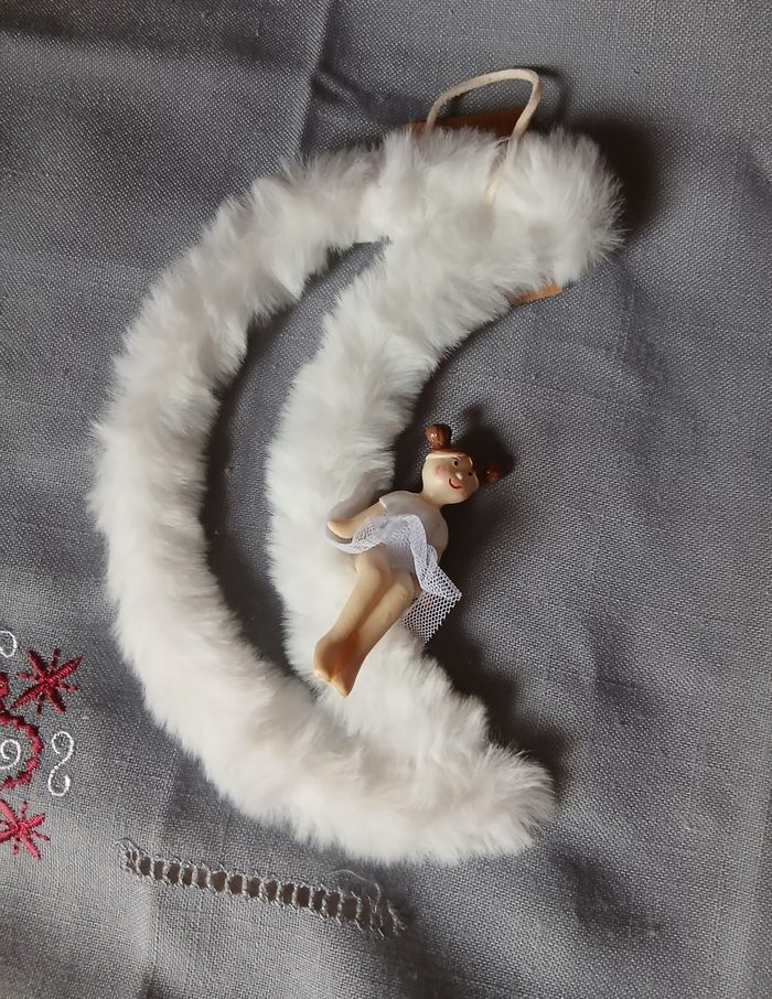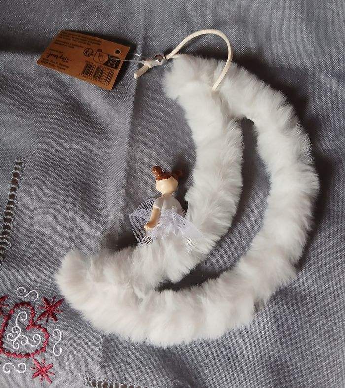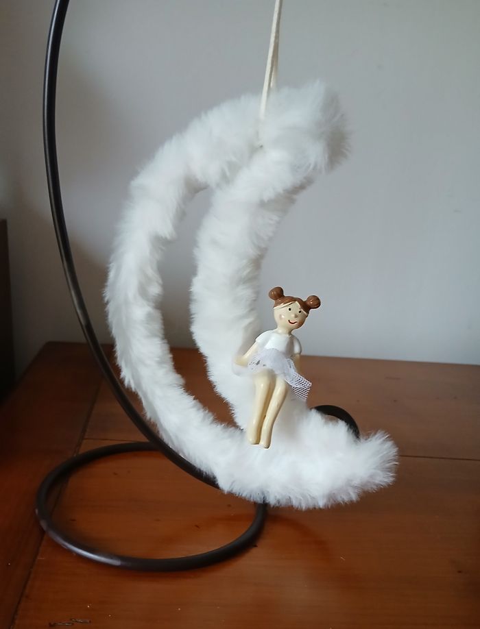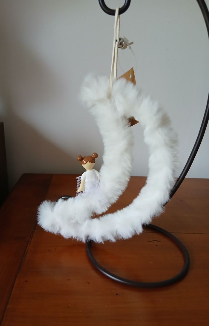 Neuf Déco/Suspension: Petite Fille assise sur lune blanche