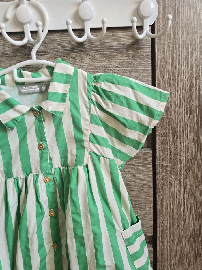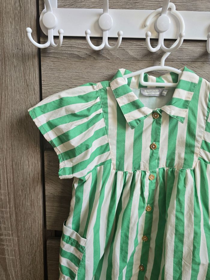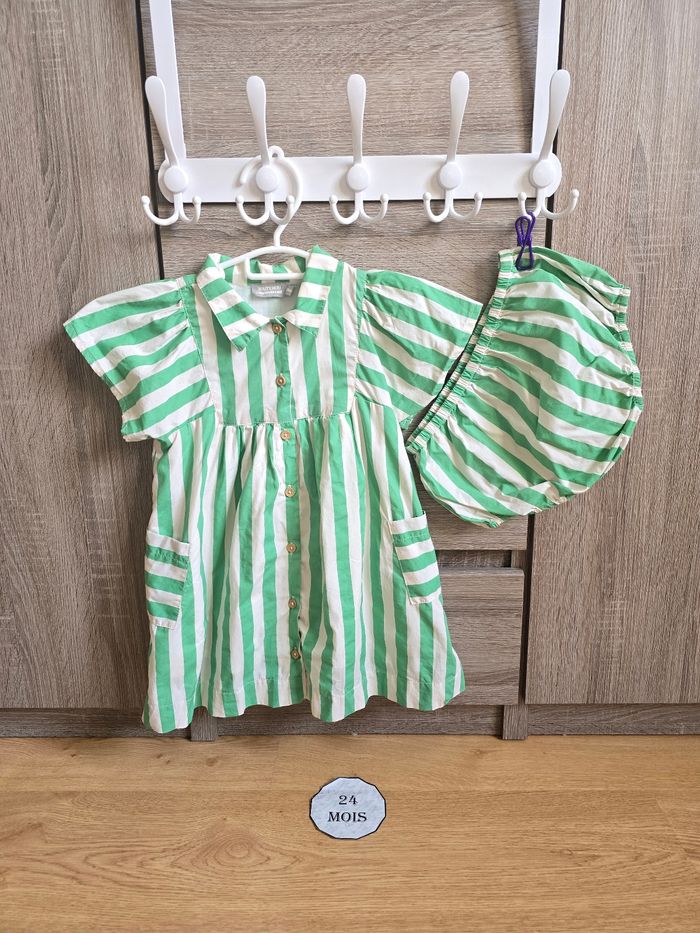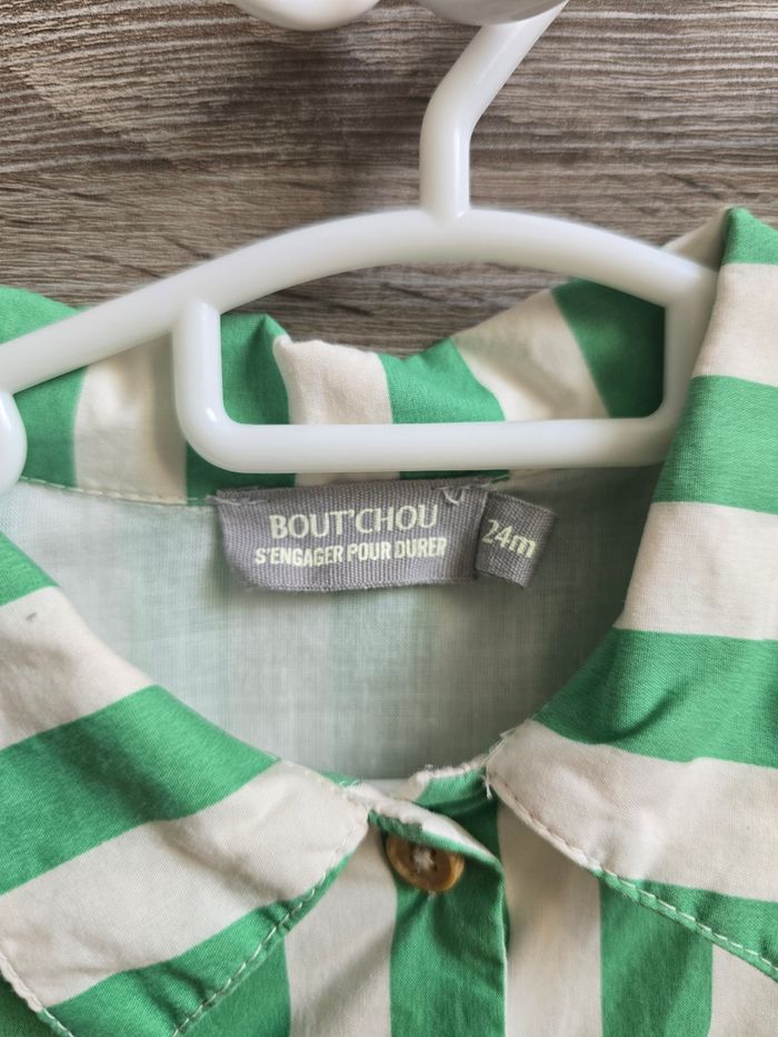 Lien direct vers les tailles équivalentes dans mon dressing : #fdhsarah24mois 📜 Robe vert menthe clair et blanc avec des rayures verticales avec un col classique style chemise avec bloomer assortie. Taille 📏 : 24 mois État 🔍 : Très bon état Marque 🏷️ : Bout'chou Je suis disponible pour toutes questions ou photos supplémentaires. 📦 L’envoi se fait le plus rapidement possible Bon Shopping