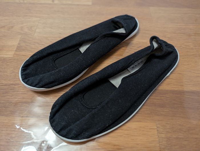 Chaussons de gym unisexe pointure 31 État satisfaisant voire bon état, noir, semelles intérieures tachées, semelles extérieures sales, les chaussons ont été lavés et peu utilisés.