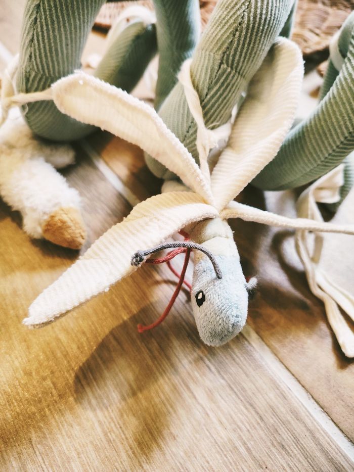 🎀 Oie papier bruissant, grenouille avec hochet et miroir (un peu abîmé voir photo) , libellule avec différentes matières à découvrir...