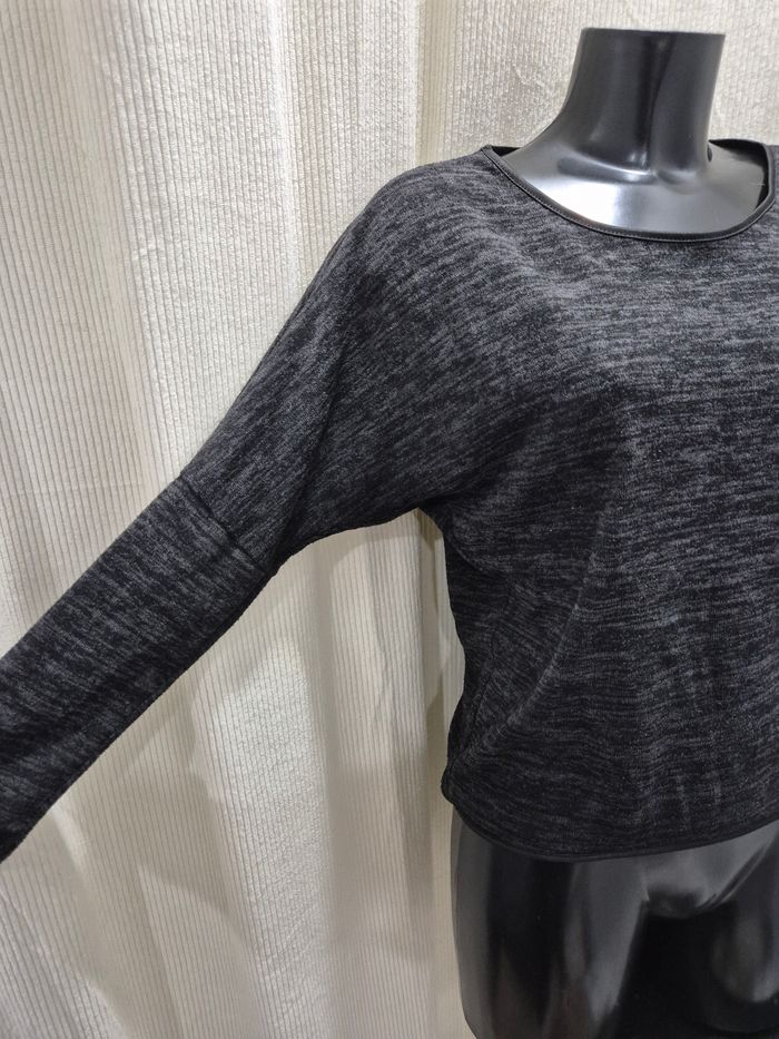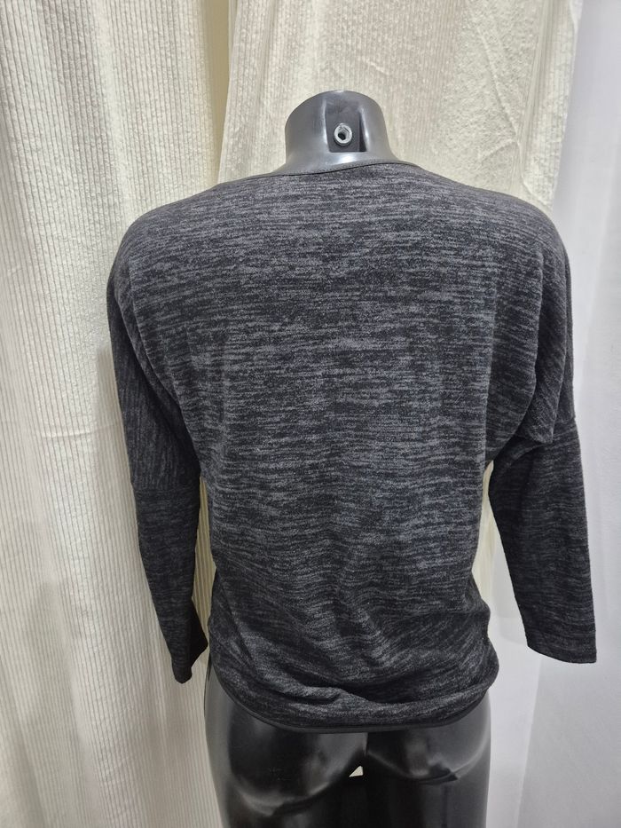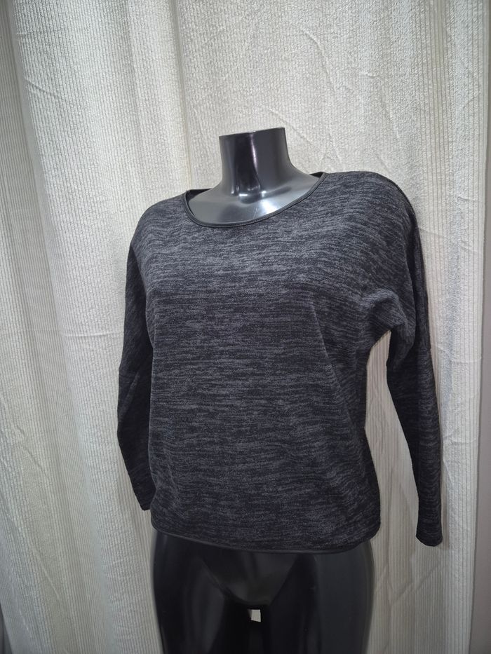 ▪︎Pull gris noir ▪︎Taille s/m ▪︎Col rond ▪︎Manches chauve-souris léger ▪︎Étiquette coupée