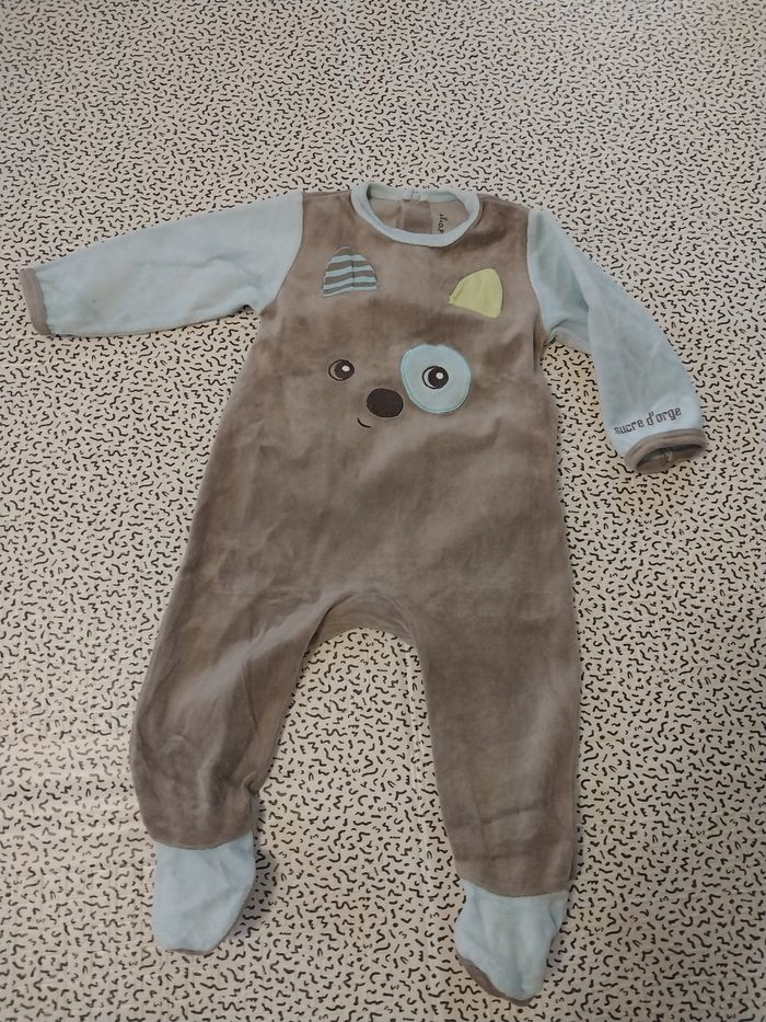 Pyjama velours Sucre d’Orge – 12 mois – motif ourson – mixte - photo numéro 1