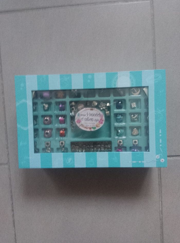 Fabrique jusqu'à 5 colliers et bracelets élégants différents. Une belle boîte à bijoux incluse pour ranger tes créations. Contient de nombreux accessoires dont : des charms (breloques), des perles alphabet, 4 bracelets, du cordon, du ruban et 1 accessoire. Instructions incluses. Développe la créativité et de la motricité. Simple d'utilisation. Boîte avec 2 niveaux de rangement. Dimensions de la boîte à bijoux : 25 x 16 x 6 cm.