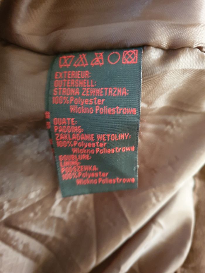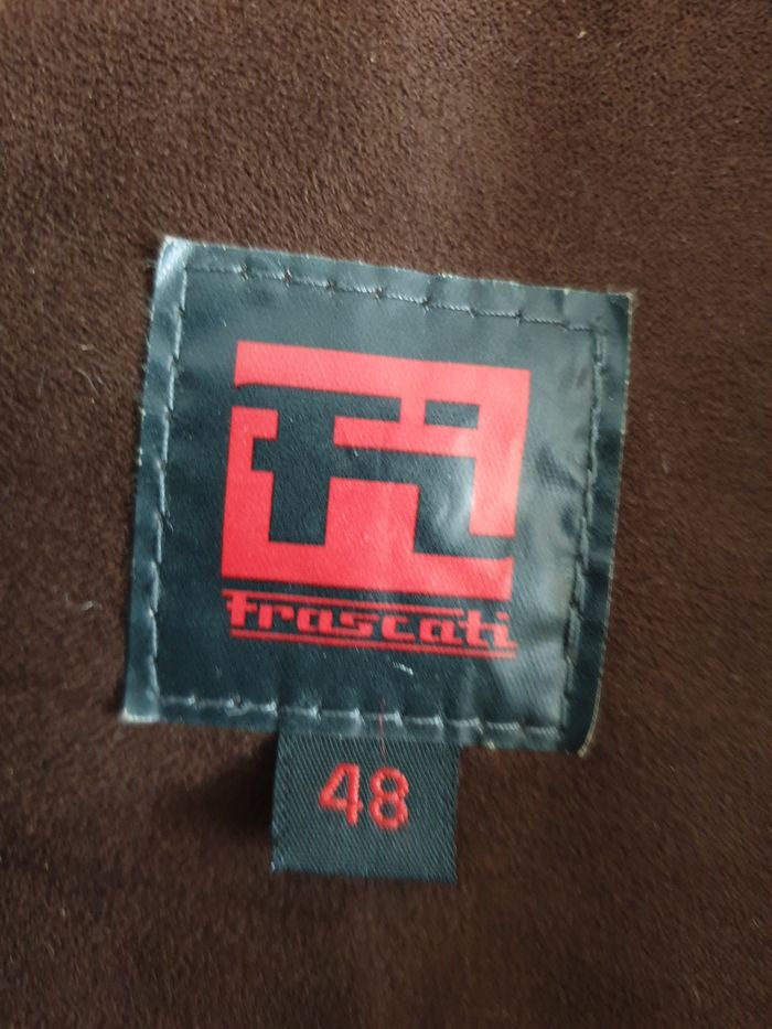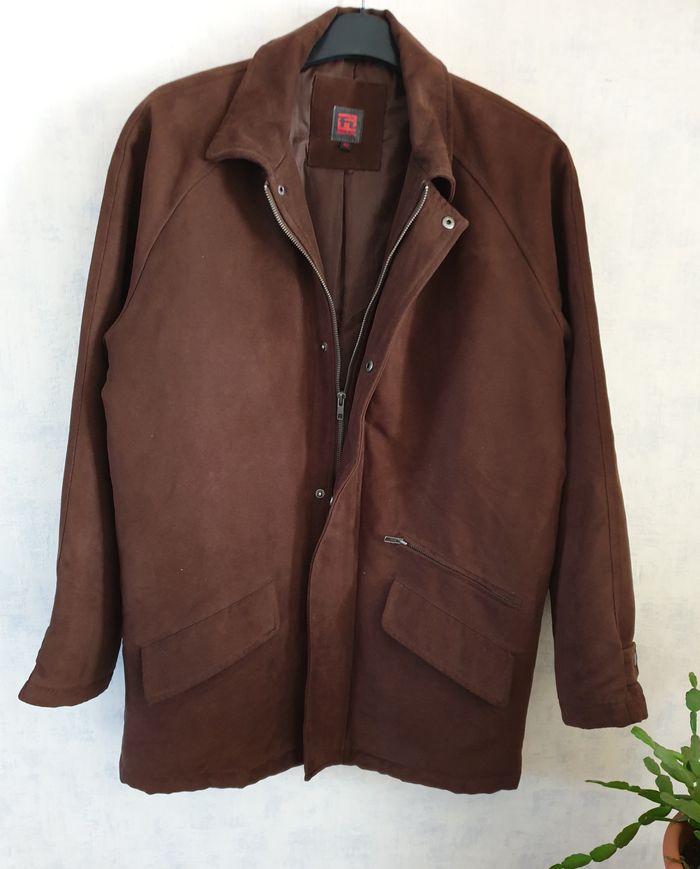 Très beau manteau court pour homme en très bon état. Il a été très peu porté. De couleur marron, il a un aspect velours ras, genre suédine. La doublure est comme neuve. Marque : Frascati Taille : 48 Extérieur, ouate et doublure : 100 % polyester Nettoyage à sec Les mesures prises à plat peuvent varier de quelques millimètres. Largeur épaules : 54 cm Largeur emmanchures : 61 cm Hauteur : 83 cm Envoi rapide et soigné