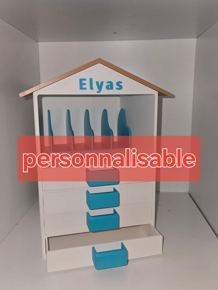 Charmante petite maison de rangement, parfaite pour organiser de petits objets dans une chambre ou un coin jeux.