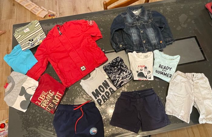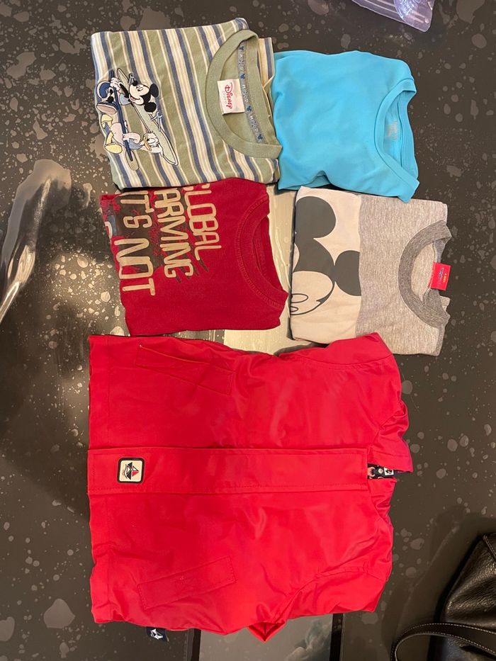 Donnés avec : 1 imperméable rouge car c’est cassé au niveau des poches, 3 tshirts, 1 tshirts anti UV