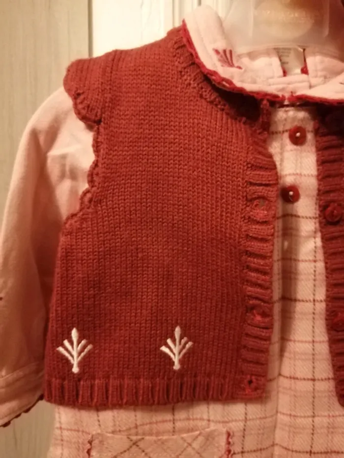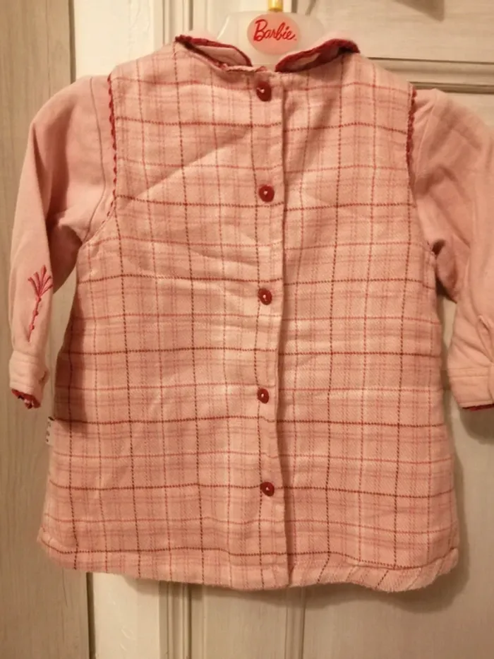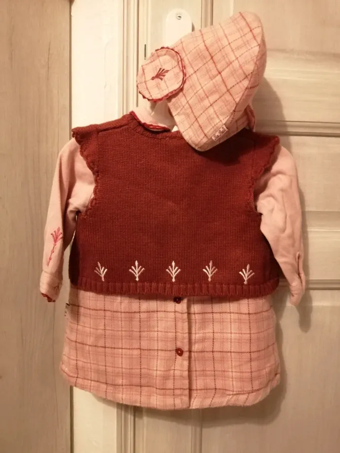 Ensemble composé : 1 robe boutons dans tout le dos 1 chemisier boutons dans le dos 1 gilet sans manches à boutons 1 béret
