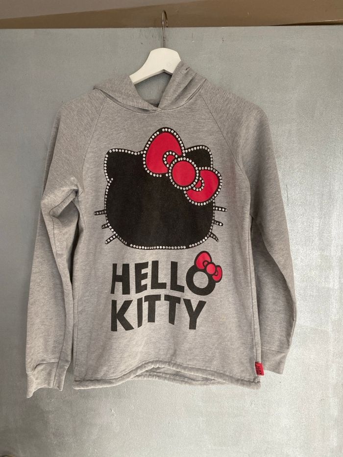 Sweat-shirt à capuche gris avec motif Hello Kitty noir et rouge taille 13 - 14 ans