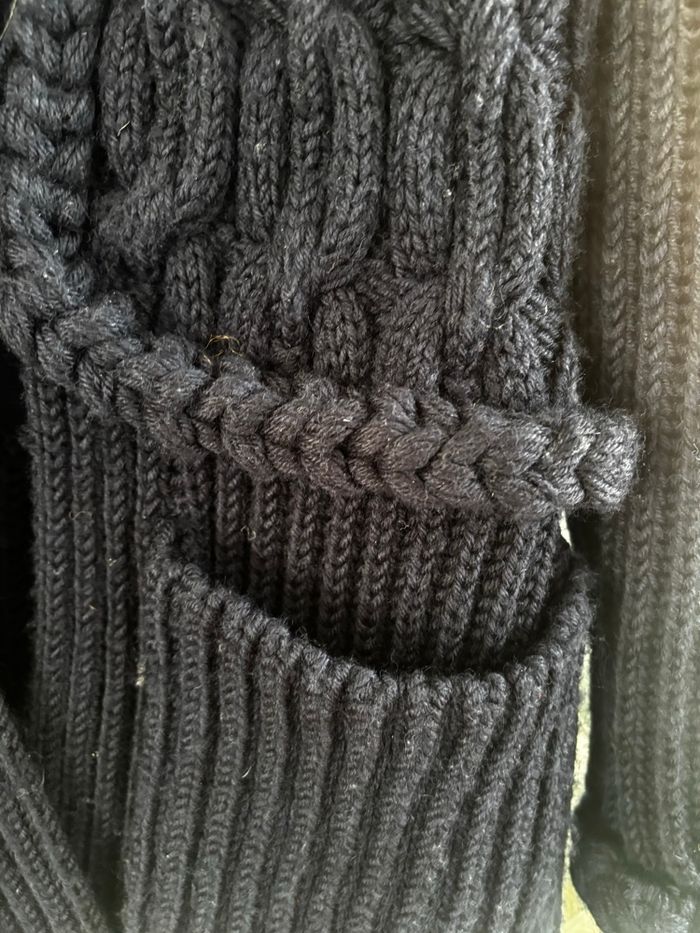 Très beau gilet de la marque Sonia by Sonia Rykiel Étiquette coupée mais correspond à un 36-38 merci de vous fier aux mesures ci dessous: -épaules au bas : 80 cm -aisselles bas de manche : 48 cm -épaules au bas manche : 68 cm -aisselles à aisselles 45 cm aisselles bas du gilet 50 cm Très chaud et lourd (1,3 kg) contient de la laine Couleur bleu marine Mis en état satisfaisant en raison de petites bouloches et fils lié à la matière, reste propre et tout a fait portable