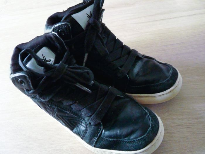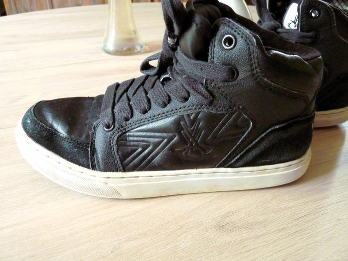 Baskets garçon Vortex pointure 35 chaussures noir cuir TBE - photo numéro 2
