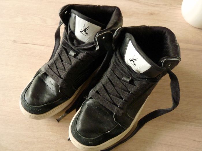 Baskets garçon Vortex pointure 35 chaussures noir cuir TBE - photo numéro 1