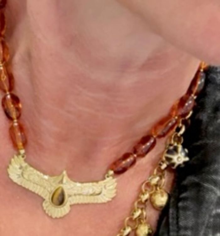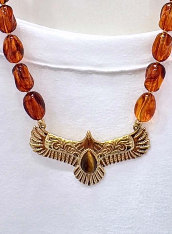 Collier mile Mila grosses perles aigles acier inoxydable or onyx au centre