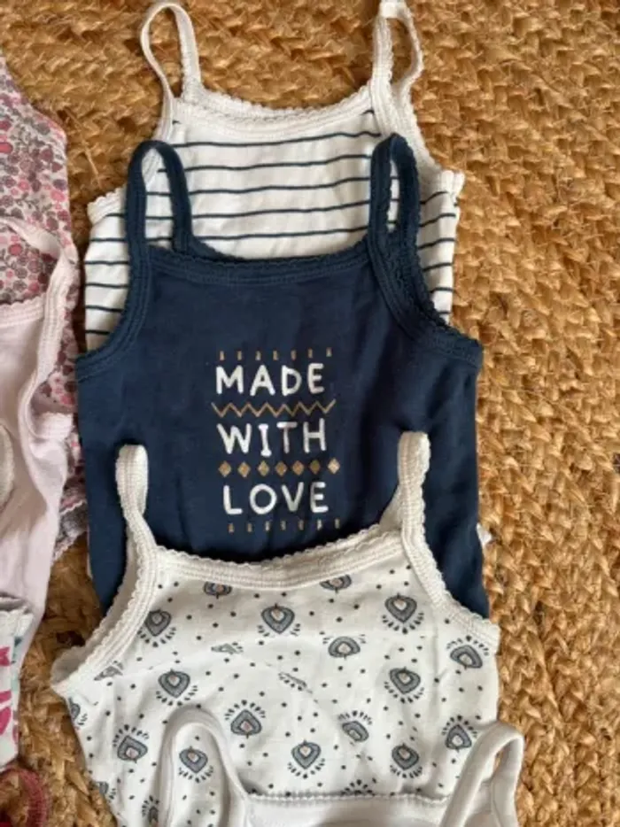 Lot de 10 bodys bretelles 12 mois tbe