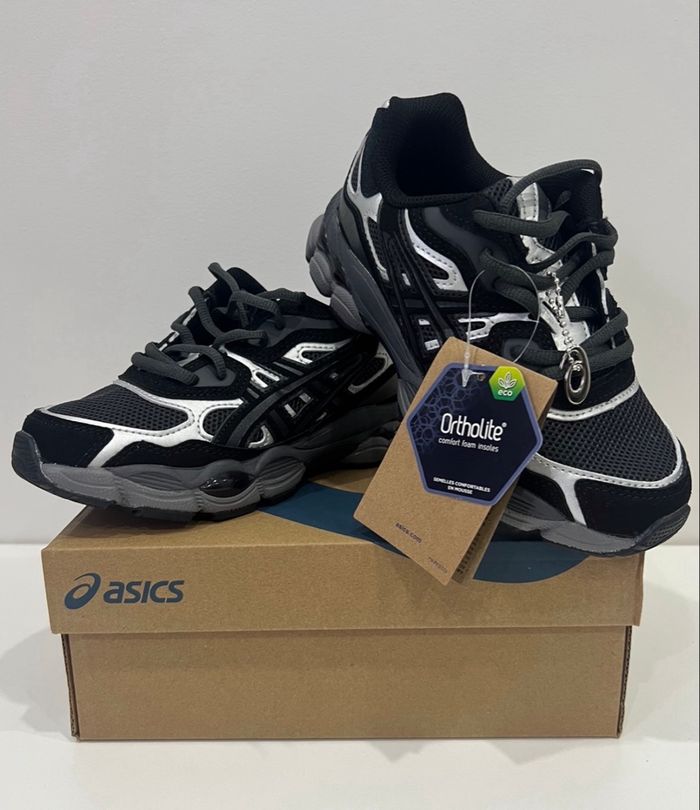 Chaussure Asics GEL Neuf jamais porté dans la boîte Taille 35 Couleur Noir et Grise Envoie rapide et soigner sous 24/48h Plusieurs tailles disponible du 30 au 35